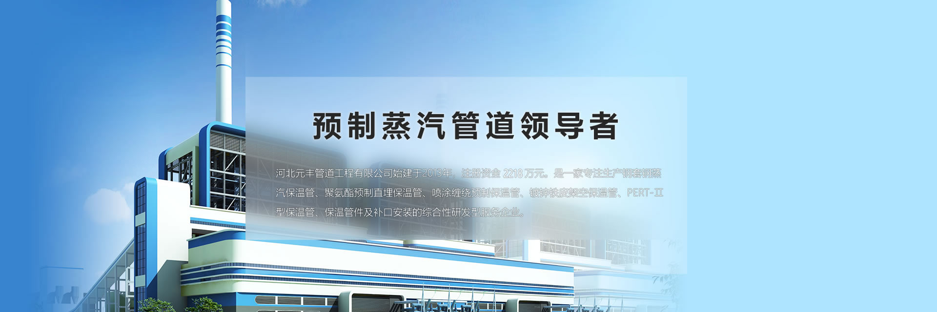 公司在河北、內(nèi)蒙、天津、遼寧均有生產(chǎn)基地,總占地面積500余畝。公司產(chǎn)品覆蓋中國(guó)以及蒙古、俄羅斯、中東、南非等20 多個(gè)國(guó)家和地區(qū),產(chǎn)品主要應(yīng)用于高溫蒸汽輸送、集中供熱、集中供冷等。